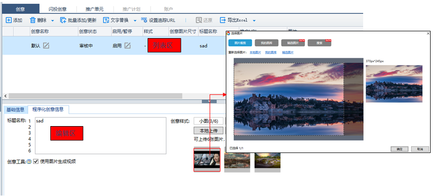 2.支持批量編輯程序化創(chuàng)意標(biāo)題名稱、圖片信息等;
