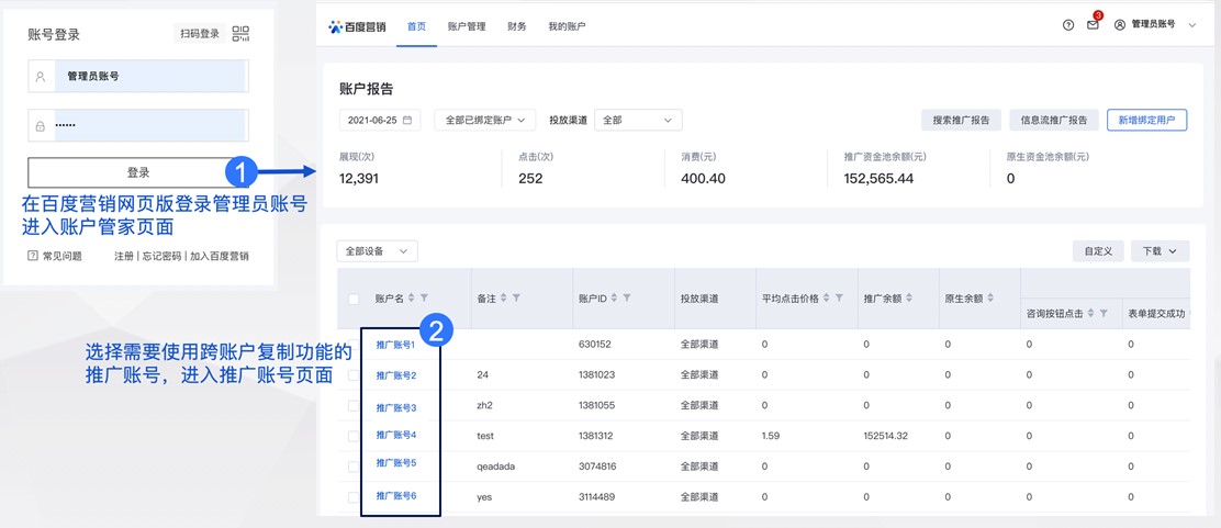 2.1賬戶登錄:登錄賬戶管家賬號進入賬戶管家首頁,選擇推廣賬戶