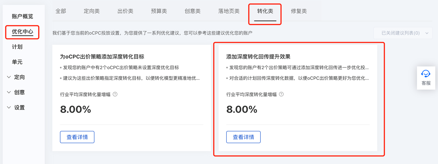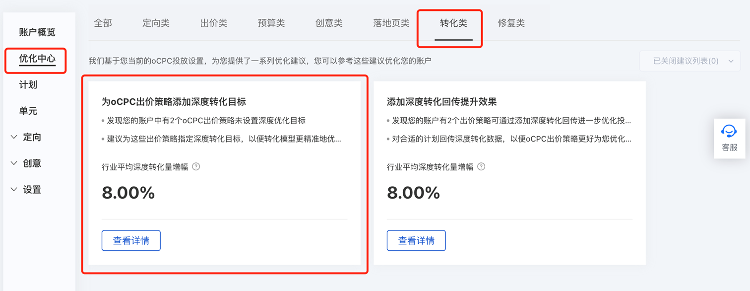 百度搜索推廣-“優(yōu)化中心”新增oCPC投放相關(guān)建議