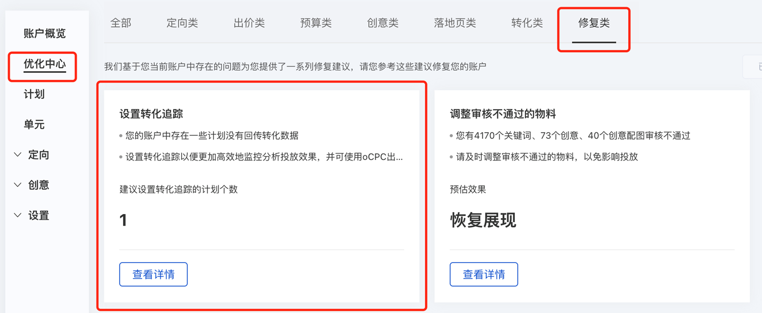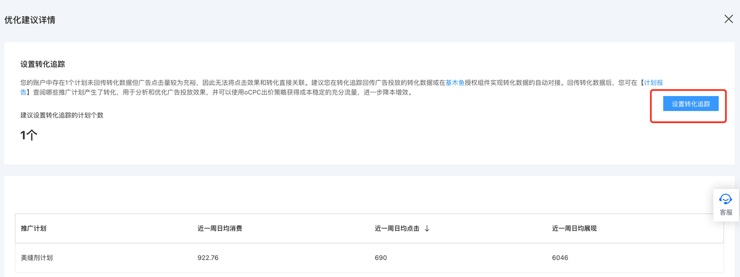 - 優(yōu)化中心-修復(fù)類-【設(shè)置轉(zhuǎn)化追蹤】: