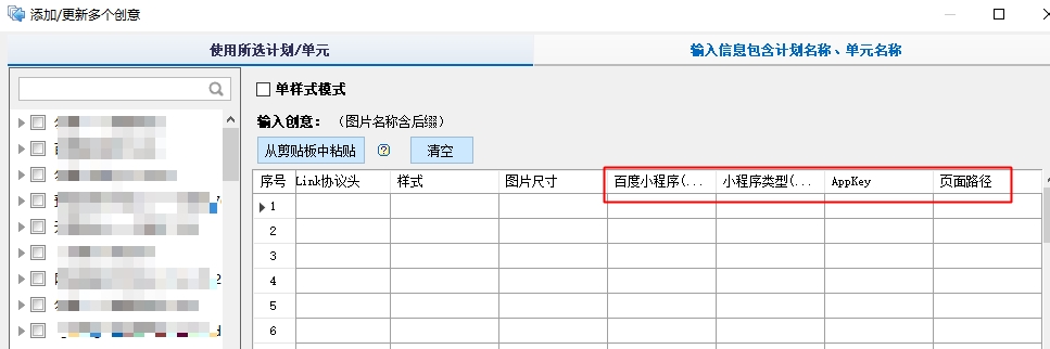 2)、支持excel批量添加,如需投放小程序,請(qǐng)正確填寫“百度小程序”為”投放“否則系統(tǒng)默認(rèn)為”不投放“;如需投放”小游戲“,在小程序類型正確填寫為”小游戲“,否則系統(tǒng)默認(rèn)為”小程序“。