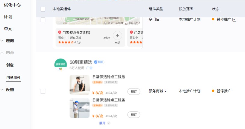 入口2:數據報告->創意報告->創意組件報告,選擇組件類型為本地類->服務商城卡