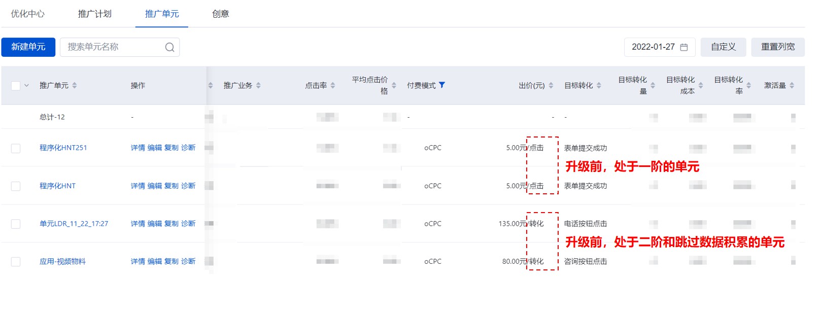 存量的oCPC一階單元,如果在2022年3月17日之前未更新為【目標轉(zhuǎn)化出價】(即原【跳過數(shù)據(jù)積累-是】的出價模式),系統(tǒng)會統(tǒng)一將其更新為oCPC目標轉(zhuǎn)化出價,屆時將不再遵循點擊出價。