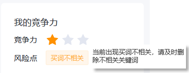 - 【我的競爭力】新增對存在少量不相關關鍵詞賬戶披露“買詞不相關”風險點預警