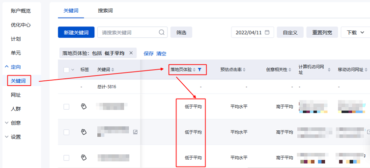 為幫助更多廣告主發現潛在的買詞不相關問題,避免持續添加不相關關鍵詞而導致廣告展現受限。搜索推廣將升級【我的競爭力】“買詞不相關”風險點,對存在少量不相關關鍵詞但尚未達到展現受限門檻的賬戶,披露風險點預警。幫助廣告主及時優化調整,提升投放效果。