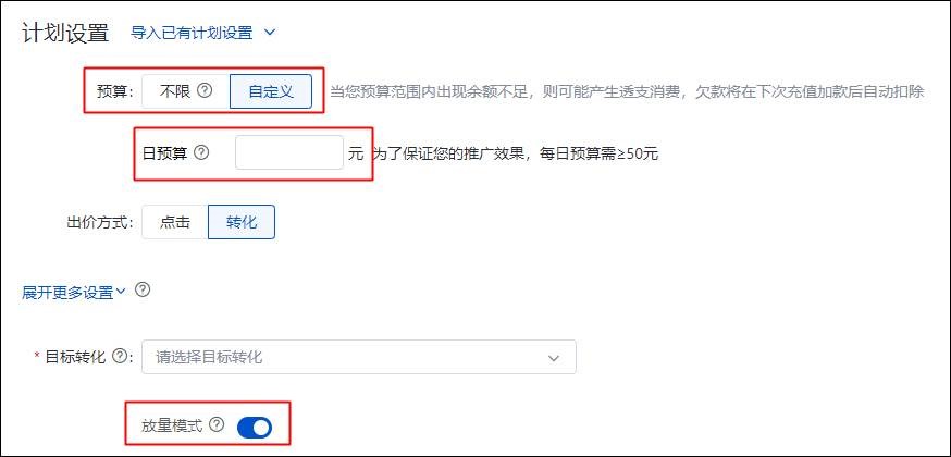 【搜索推廣】新建計劃出價方式設置升級:支持設置“增強模式”“目標轉化成本”或“放量模式”